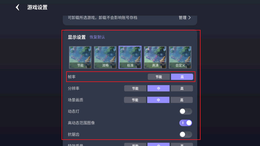 2、进入设置后往下滑找到显示设置后,滑动帧率开关即可