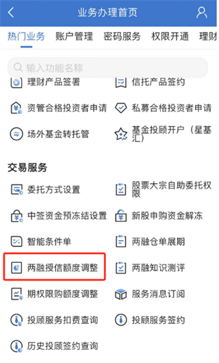 首页-【业务办理】-【交易服务】-【两融授信额度调整】
