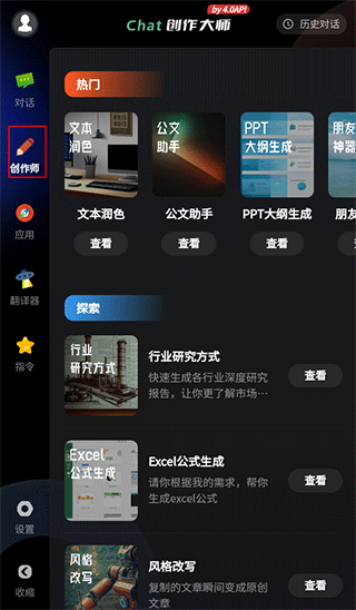 2、在创作师界面,给用户提供了文本润色、公文助手、ppt大纲生成、朋友圈神器、小红书探店文案等功能