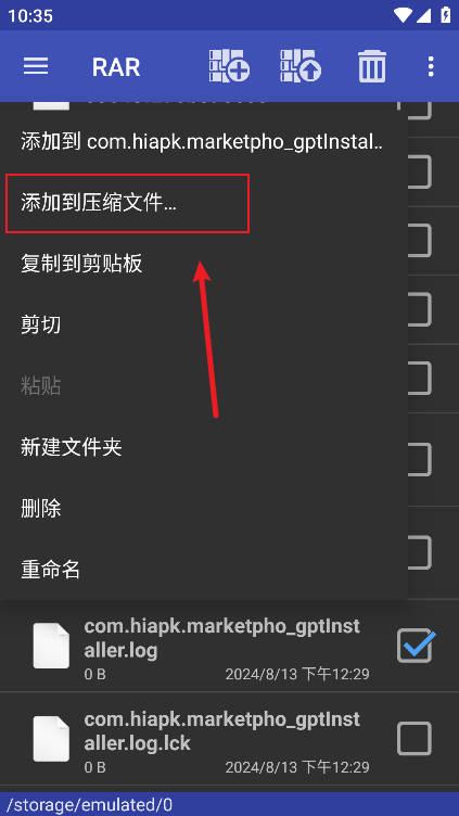 2、长按文件选择添加到压缩文件