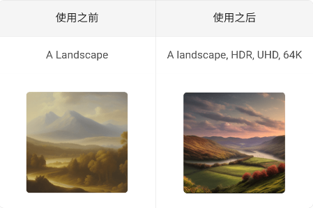 添加专业词汇可以大大提高图像的色彩、对比度和细节。