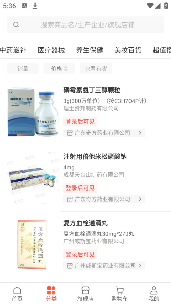 1、安装好软件之后,点击注册登录,找到自己想要购买的药品;