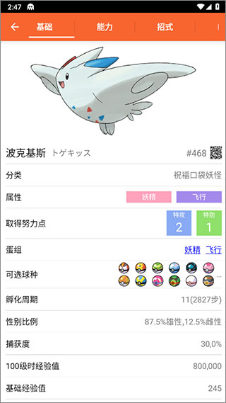 点进去还可以查看对应的基础值、能力值、招式和培育方式等等。