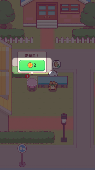 1、进入游戏后点击图示位置的新菜单即可解锁小吃店的第一种食物
