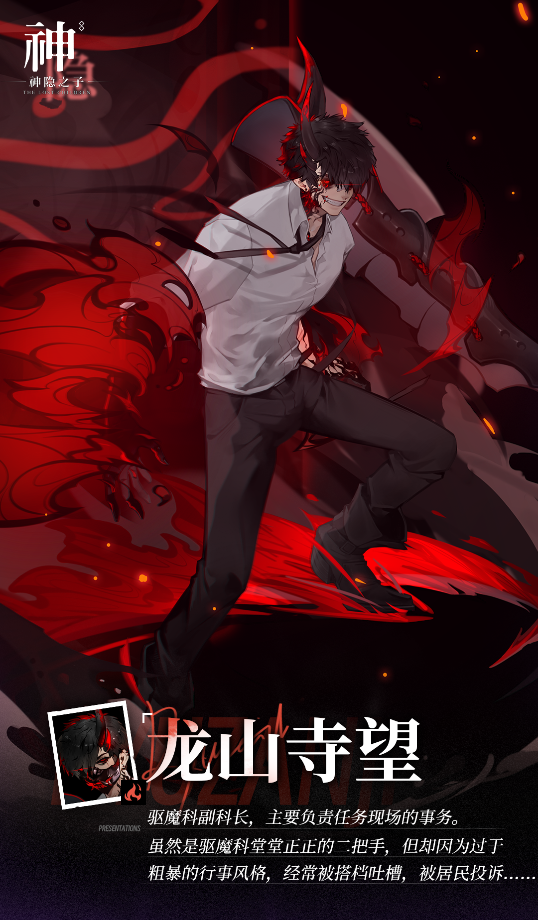 龙山寺望以狂躁的脾气而闻名,早年间他粗暴的执法手段曾一度令其在驱魔科和民间声名狼藉。尽管如今已有收敛,但在面对敌人之时,其熊熊燃烧的怒火依旧使龙山寺望如同猛兽般势不可挡。