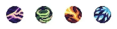宁芙使用法术会获得一个持续一段时间的对应元素的法球,身上法球分别满足不同条件时可以释放对应的复合法术。