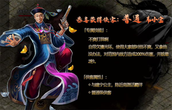 侠客在游戏中的主要作用是帮助抗怪和提供一部分持续输出,每个侠客都拥有独一无二的技能,和特定羁绊。