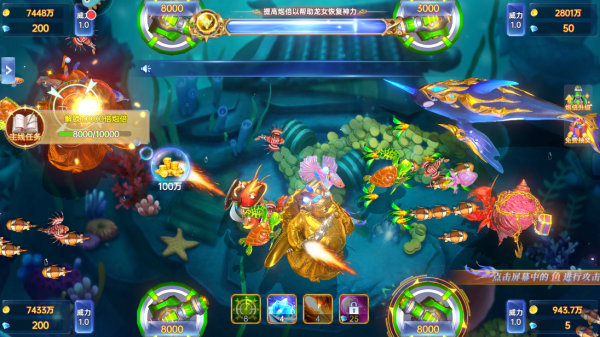捕鱼新纪元华为版是华为与游戏官方共同推出的一款街机捕鱼游戏,玩家可以使用华为账号一键登录,还可以领取华为独家游戏礼包,帮助成长快人一步!在游戏中,玩家可以通过操控炮台,发射渔网来捕捉各种珍稀鱼类,体验捕鱼的乐趣。除了有大量礼包、活动和充值优惠之外,捕鱼新纪元手游更是颠覆了传统捕鱼玩法,精细华丽的游戏画面、炫酷丰富的游戏角色以及各种鱼类,让玩家仿佛置身于深海神话之中。