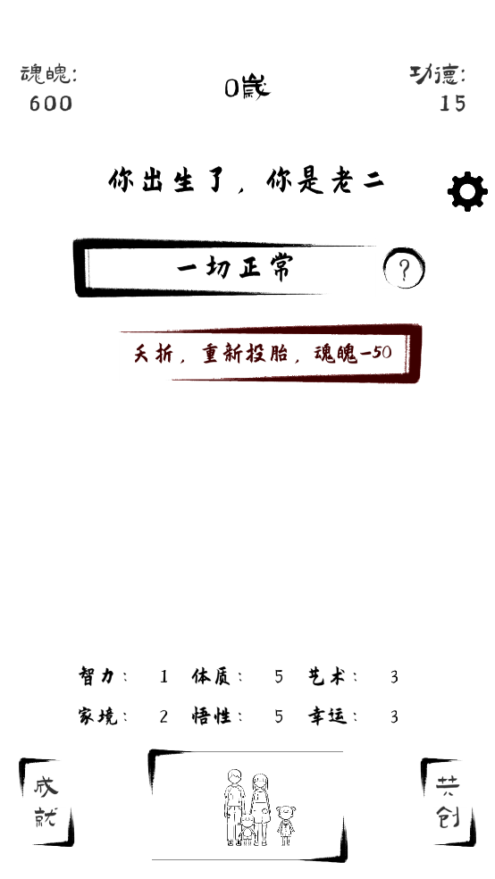 1、进入游戏内,玩家需要投胎,角色属性是随机的,不满意当前的属性还可以免费刷新一次
