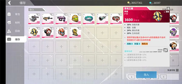 7、鞋子选择异常鞋子,劳拉能打出的异常还是挺多的,有冰缓,减速,感电,破甲,动能套还有眩晕加一起50%的伤害加成非常恐怖。
