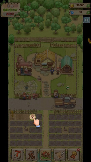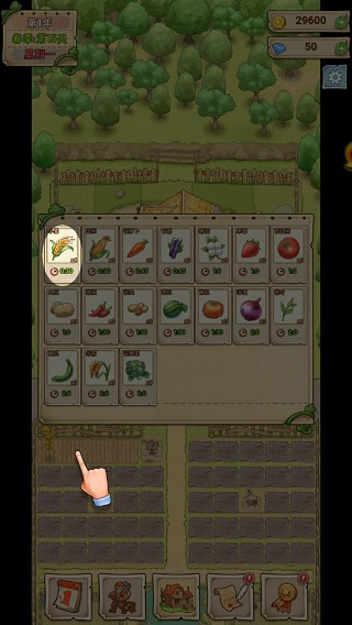 具备了耕地条件,现在开始播种一些作物吧,具体操作,同样点击耕地位置处,选择你要播种的作物类型,滑动屏幕即可将作物全部撒在农田里。