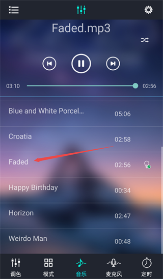 2、用户可以在界面看到很多音乐,选择一个音乐;