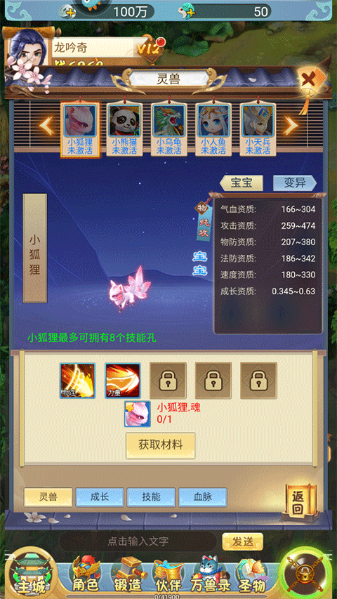 5、灵兽系统,玩家可以在灵兽捕捉或门派商店中获取材料以合成可爱萌趣的灵兽;
