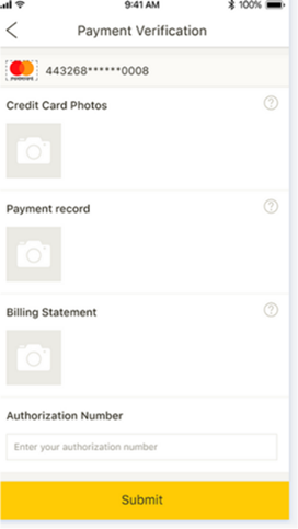 1. 验证付款或订单时可提供四种资料,分别为信用卡照片、付款记录、授权码及账单。