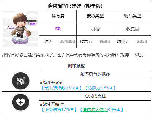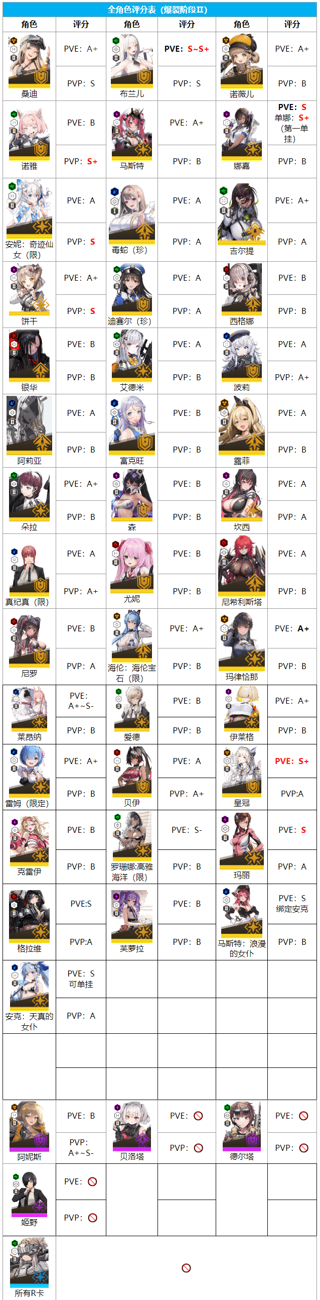特殊评分:ex (与某些妮姬锁死绑定 例如黑白兔 黑白jk 这类型的角色在一队时会有加倍效果 目前游戏的EX角色强度为s以上)