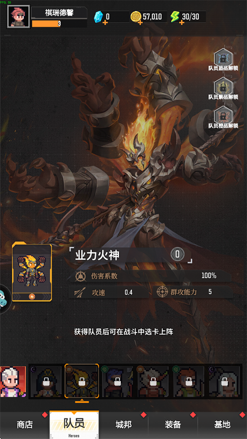 1、进入游戏,点击选择一个技能或队员,辅助你击败来势汹汹的怪物;