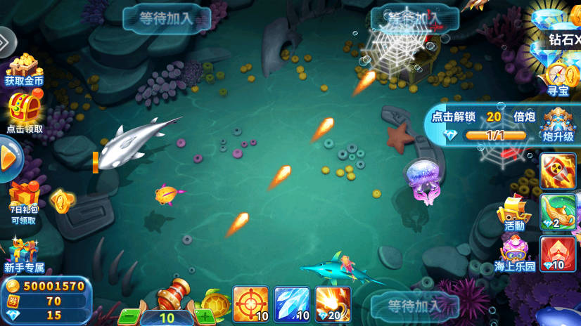 1、游戏中,玩家只需轻轻触摸屏幕,即可发射炮弹捕获海中的鱼类,操作简单直接。