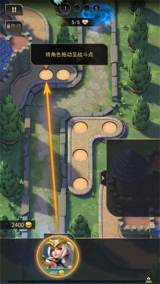 1、开局玩家可拖动底部的英雄卡牌,将角色移动到战斗点,阻止怪物前进!