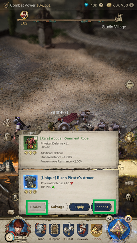 2、更优质装备会以绿色箭头标注,差属性装备可通过分解获取经验和货币。