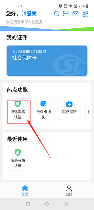 2、进入主页面点击选择“待遇资格认证”,点击进入;