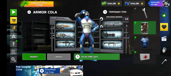 3、点击左上角的商店图标,你可以在这里购买各种物品,像摩托车这样的载具将会出现在你的身旁。