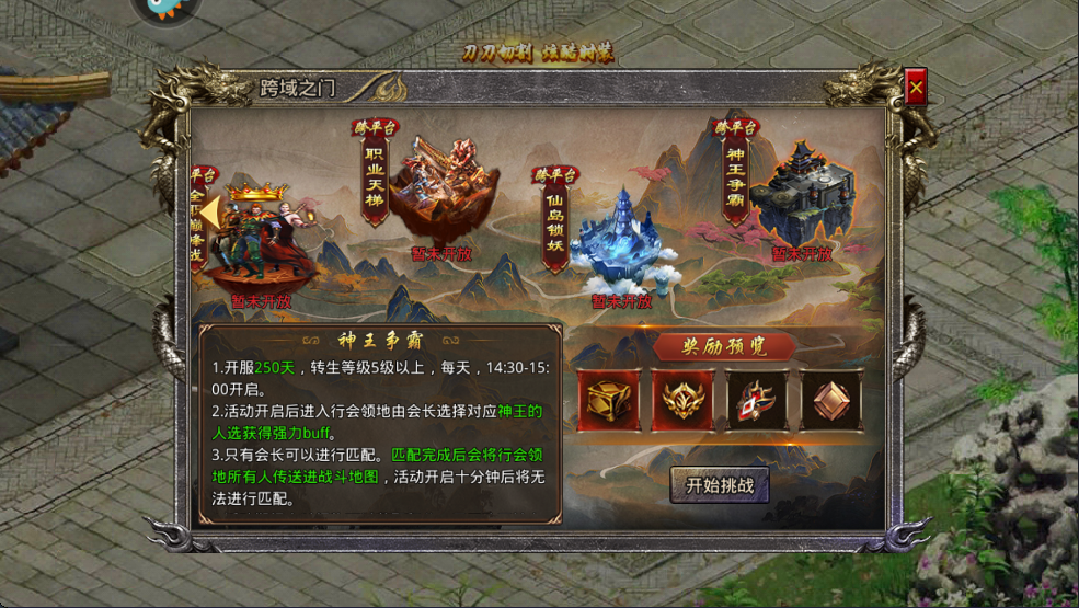 掉落奖励:神王宝箱、神王战令、神兵战令、増幅勋章