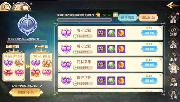 “宠物乐园”与”神宠召唤“两种形式均可获得宠物