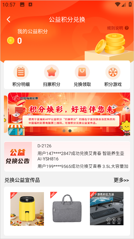 积分商城:购彩扫票赢取积分,丰富礼品兑不停;
