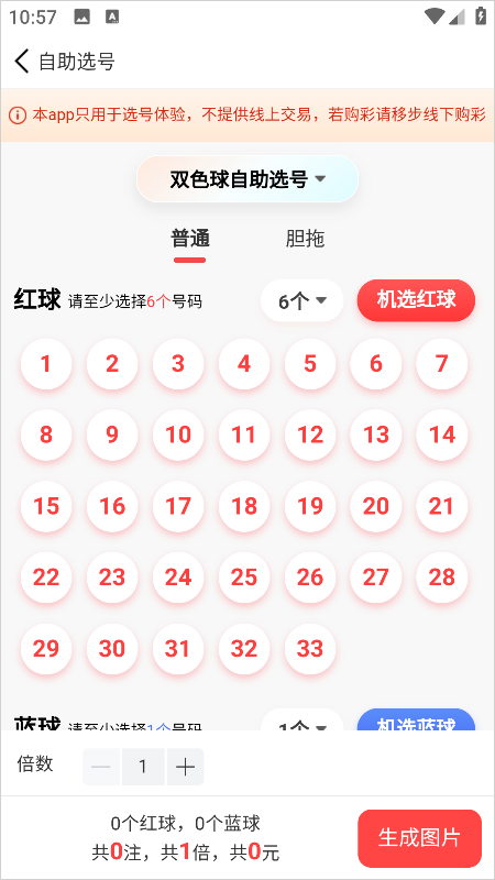 选号助手:包含双色球、福彩3D等玩法的过滤,趣味选号、智能选号、自主选号,总有一注幸运号码属于你;