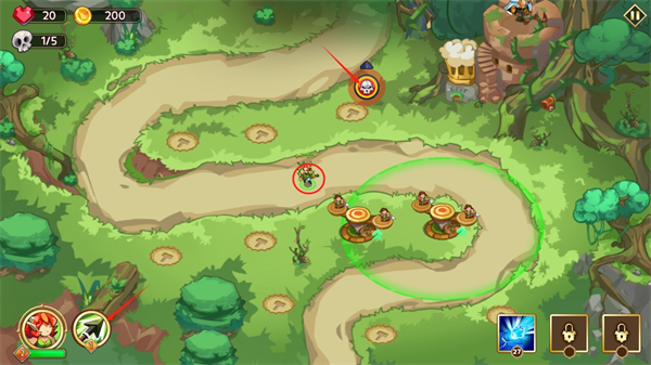 2、选择锤子图标,建立坚固的防御塔,同时还能对其进行升级,强化战力。
