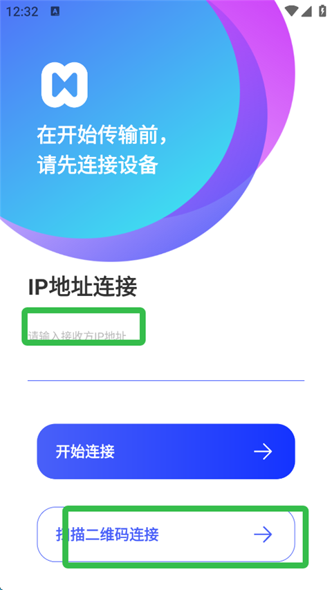 4、选择好后,用户可输入新设备的ip地址进行连接,也可以进行扫码连接。