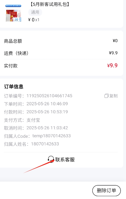 3、然后找到你要退款的订单,点击进去,找到联系客服。