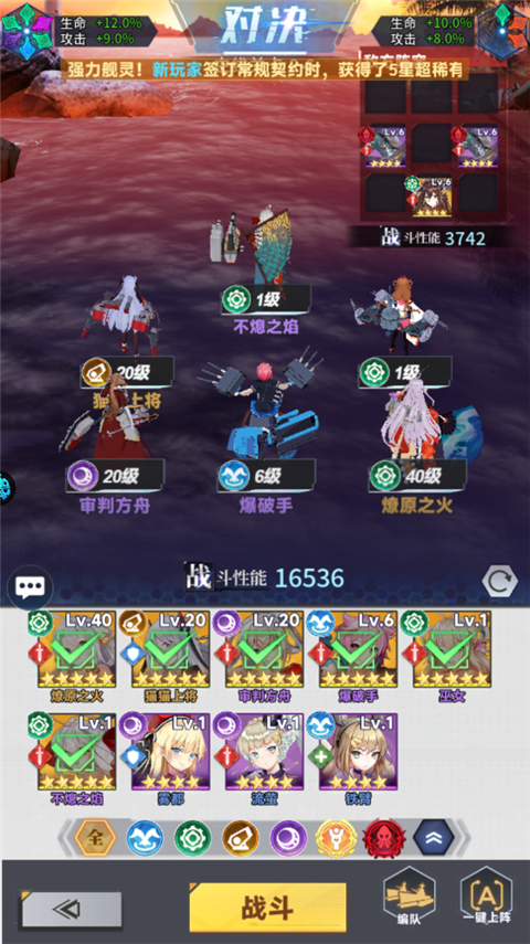 1、进入关卡时选择战斗的舰娘。