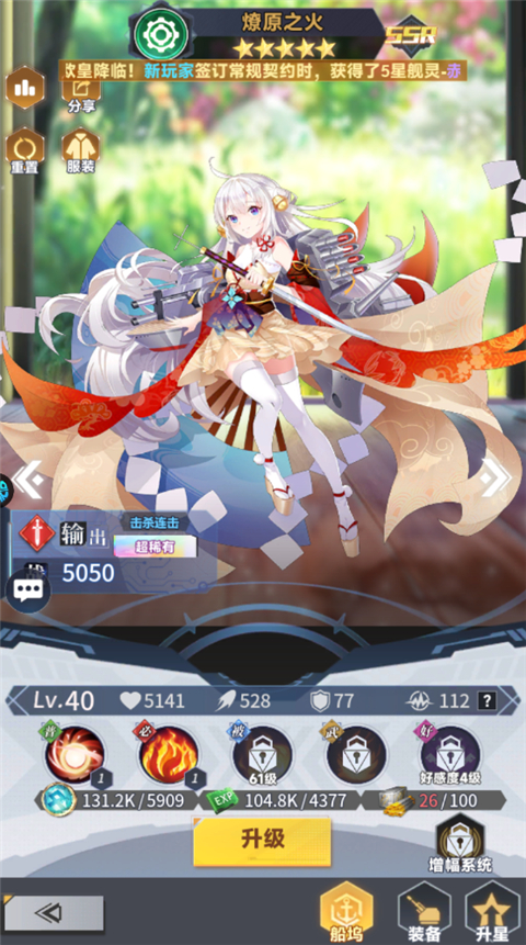 4、同时舰娘可以装备武器,也是可以进行强化的。