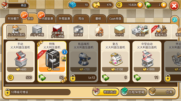 ilovepasta国际服内除了可以经营自己个人特色的餐厅之外,还能化身意大利厨师,动手制作各类意大利面条或者是数十种不同种类的意式料理。ilovepasta国际服中还有一个社群上商店系统供玩家使用,社群商店可以给自己增加收入,你可以1个人在别人的社群商会开20家店,可是1个地区只有4个商店给人开,最好的方法是找人互开商店, 最少能有4个+1个新手教学的社群商店,若是要把店面还元成原来的租赁,只要点商店的停业隔天就会还元成原来的租赁,最好是要拿了当天的奖励在按停业。还在等什么,对经营游戏感兴趣的小伙伴不妨来下载体验一番!