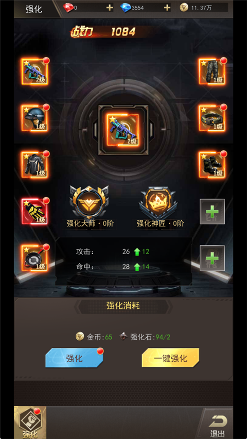 玩家可以强化身上的装备,提升生命、攻击、抗暴等属性。