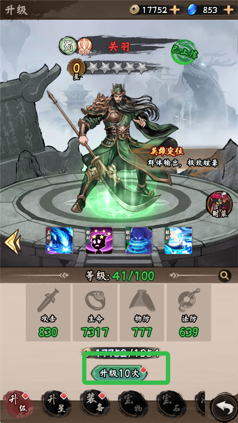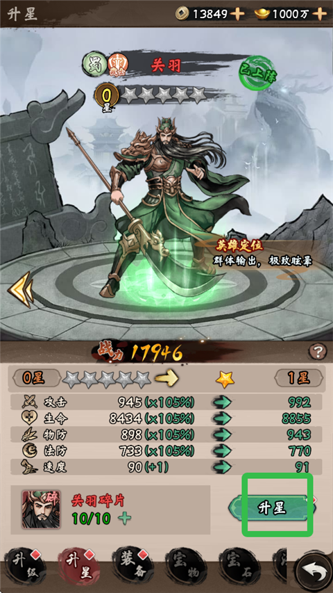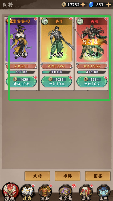3、玩家可通过招募将关羽、曹操、刘备等角色招入麾下,培养并装备他们,根据他们的特性以及相互之间的羁绊搭配阵容。