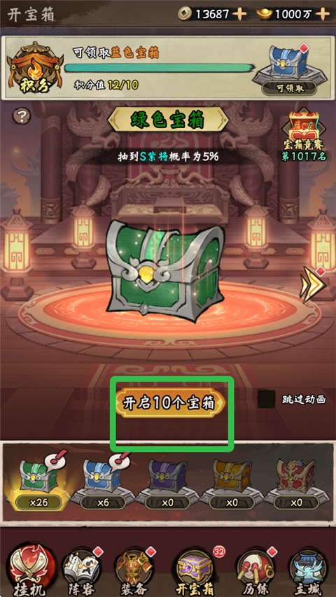 5、点击开宝箱,获取各种装备、武将碎片以及丰富材料。