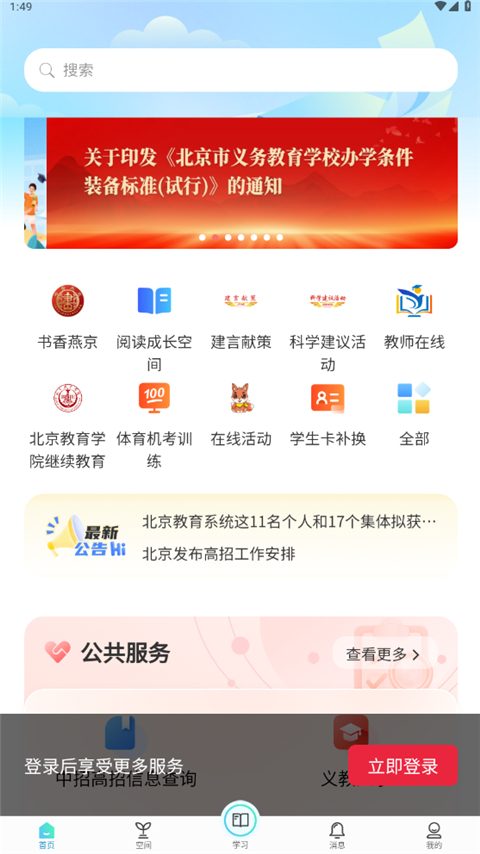 京学通App是北京市数字教育中心专为北京全市教育管理部门和广大师生、家长提供统一的教育管理信息化服务平台,提供公共服务、教师应用、学生应用、综合应用、公共资源、政策查询等板块,其中包含高考、中考成绩查询、体育机考训练、学生卡补换、北京市学生健康体检、北京发布高考政策、书香燕京等功能,为北京师生及家长提供教育政策、招生入学、体质健康等教育信息服务。