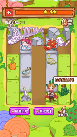 1、在有限的移动步数内,拖动勇士地块,拿起宝剑,刺向恶龙。