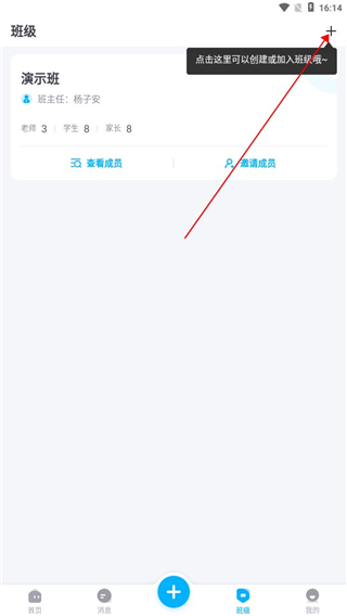 8、点击进入班级,用户可以在这里管理自己的班级,同时还可以创建或者加入新的班级。