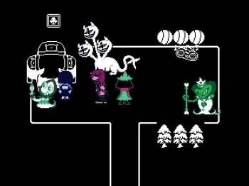 三角符文第一章手机版是一款剧情丰富的像素角色扮演游戏,它是《传说之下(Undertale)》的全新续作。在本作中,玩家将扮演一名与怪物susie生活在一起的人类kris,与来自黑暗世界的王子Ralsei一同被卷入一个神秘的黑暗世界,他们必须携手合作,应对突如其来的挑战,封印黑暗之泉。
