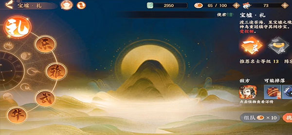 在宝墟玩法中,共有礼、乐、雅、武、华。五种关卡,每个关卡又各有九层难度。