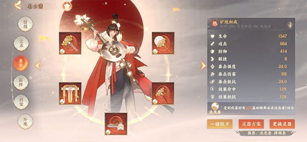 1、一个名士的强弱,很大程度上是由穿戴的灵器所决定,灵器有上衣、鞋子、配饰等五个位置,一整套的灵器还能为名士激活额外的特定效果!一整套的灵器还能为名士激活额外的特定效果!