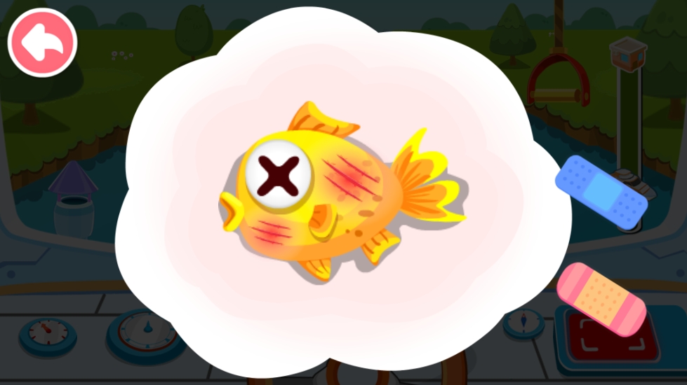 3、在清扫中,我们也会看到受伤的小鱼,赶快用伤口贴帮它包扎一下吧;