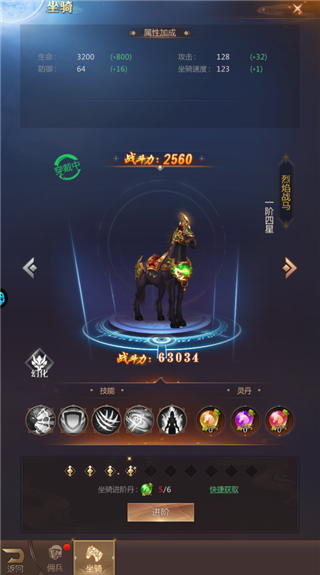 提升佣兵等级,可获得属性提升并获得战斗力。
