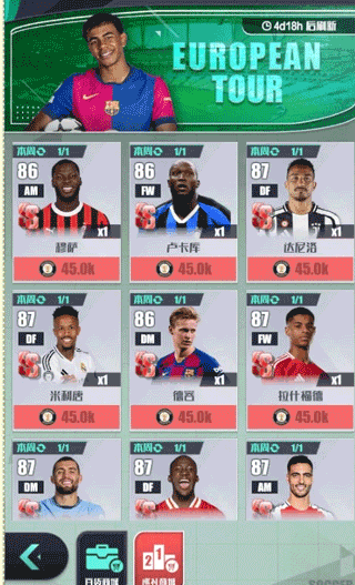 3、在欧陆巡礼中获得的巡礼币,可前往巡礼商城购买球员;