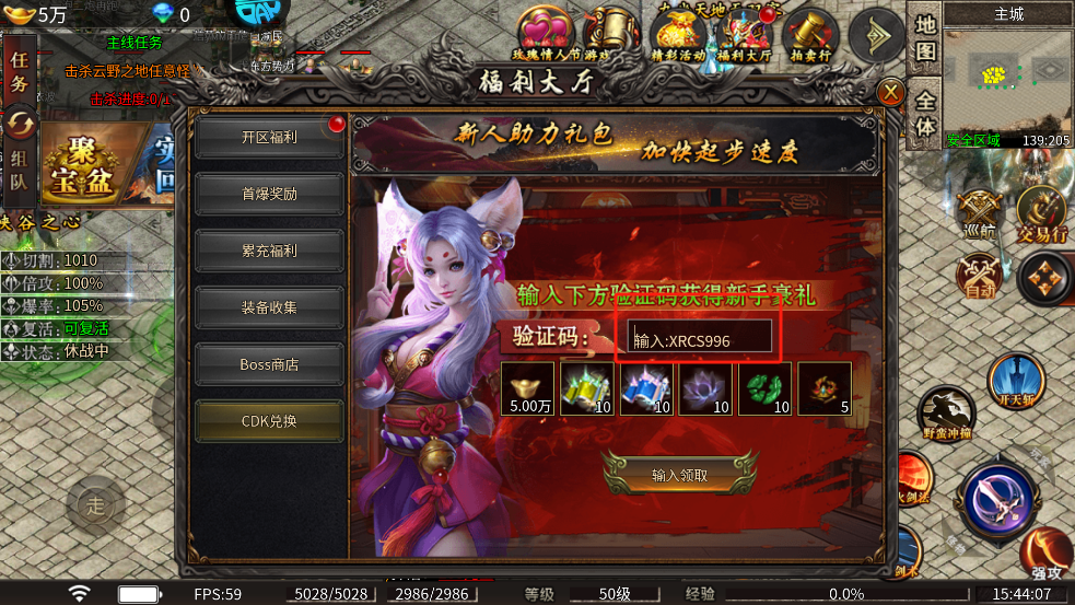 然后再点击cdk兑换,输入下方验证码即可获取新手豪礼