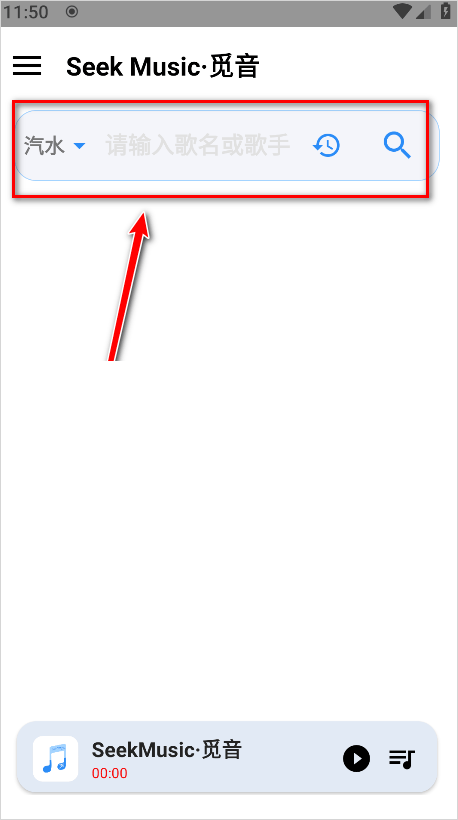 1、在本站下载安装好SeekMusic觅音app,运行软件并且授权,然后在首页点击搜索你想要的音乐