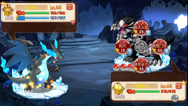 3、游戏采用回合制战斗,点击对手精灵可选择要发动的技能;
